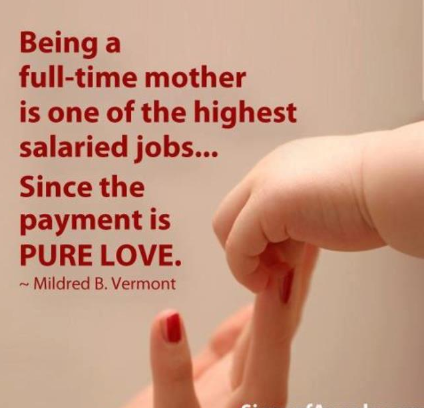 Αλλά ακόμα κι αν μένει στο σπίτι μια μαμά, αυτό δεν σημαίνει ότι η ζωή της τελείωσε. Η ανατροφή των παιδιών είναι η πιο δύσκολη δουλειά, η πιο απαιτητική, δεν τελειώνει ποτέ, αλλά πληρώνεται με την πιο μεγάλη ανταμοιβή: την αγάπη και το χαμόγελο του παιδιού σου.