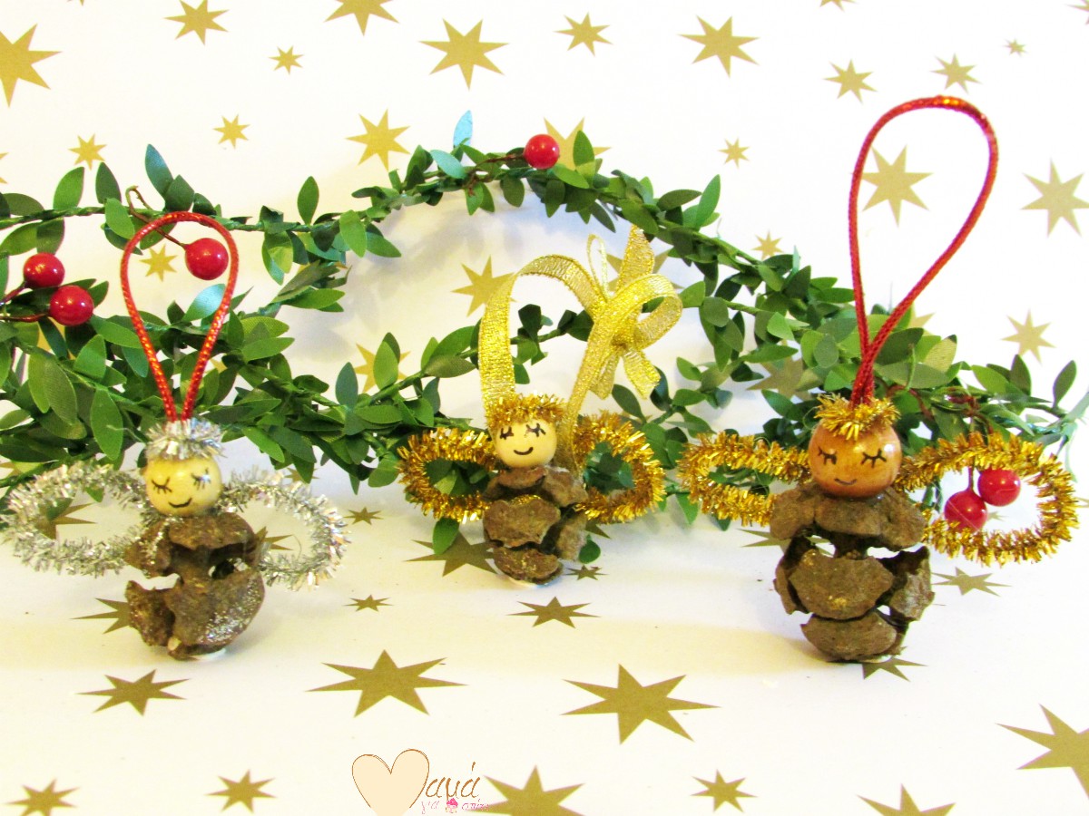 Οι κατασκευές μας λοιπόν συνήθως έχουν θέμα αγγελάκια, Φάτνη, κάρτες κλπ και σήμερα θα σας δείξω μια από τις αγαπημένες μου, που είναι τα πιο γλυκούτσικα αγγελάκια φτιαγμένα από κυπαρισσόμηλα (ξέρετε, αυτά τα μικρά κουκουνάρια, που δεν είναι κουκουνάρια και τα βρίσκουμε όπου υπάρχουν κυπαρίσσια). Εγώ κάθε καλοκαίρι μαζεύω κουκουνάρια και κυπαρισσόμηλα από όπου βρίσκω, επίτηδες για στολισμό και κατασκευές!