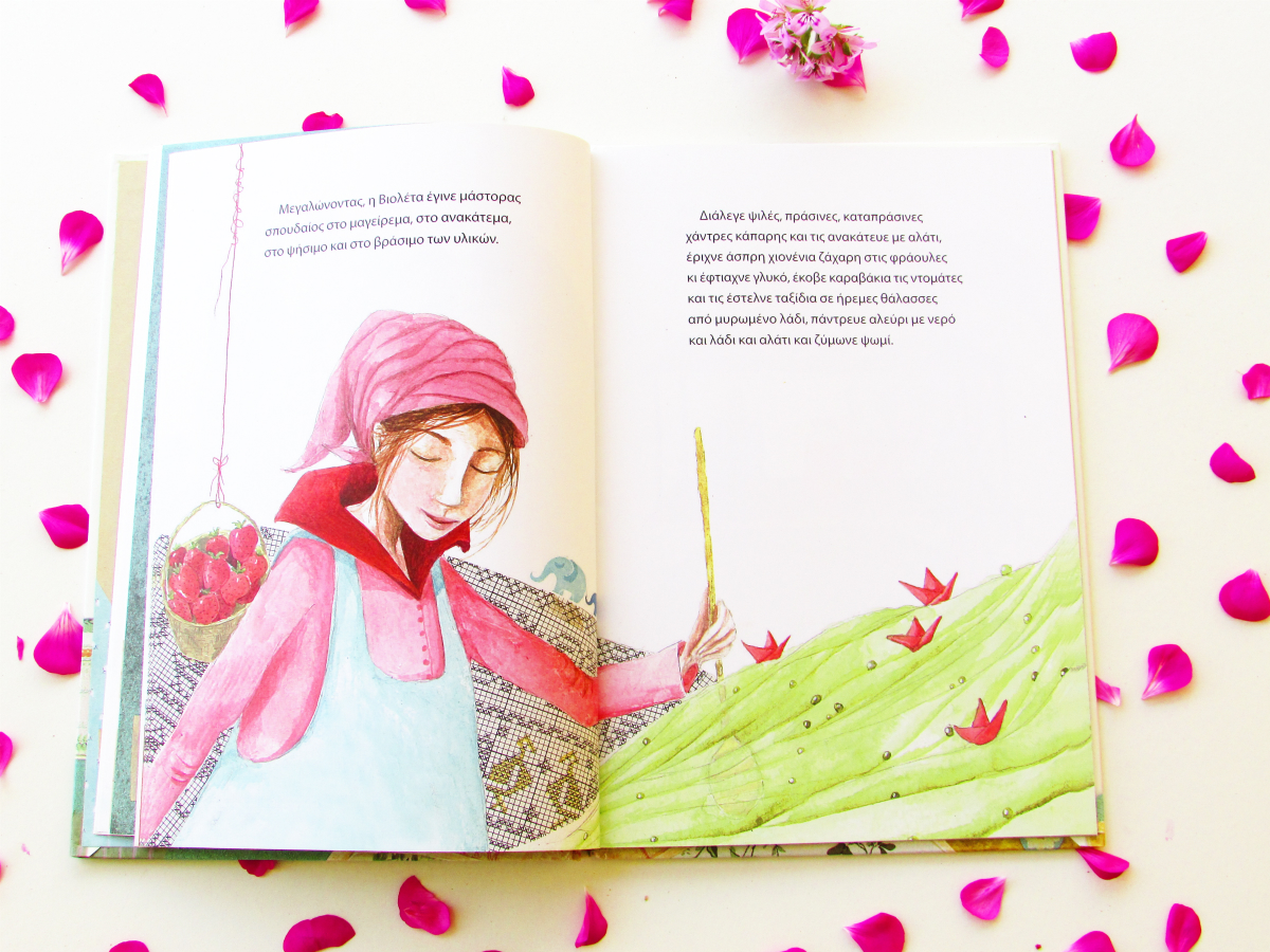 Σε έναν τόπο μακρινό, έξω από το χρόνο, ζούσε η Βιολέτα. Γεννήθηκε τυφλή, αλλά σ’ εκείνον τον τόπο όπου ζούσε οι άνθρωποι θεωρούσαν χάρισμα να είσαι τυφλός. Μεγαλώνοντας έγινε μαέστρος στο μαγείρεμα και τις γεύσεις. Όμως κάτι της έλειπε και κάτι περίμενε. Μέχρι που έφτασε από μακριά ένας ιππότης, από αυτούς που συναντάς μόνο στα παραμύθια. Συναντήθηκαν μια μέρα του Απρίλη, στην καρδιά της άνοιξης. Και τότε… έγιναν θαύματα! Γιατί κι ο έρωτας είναι ο ίδιος ένα θαύμα, που χαρίζει δώρα πολλά και γιατρεύει το σώμα και την ψυχή.