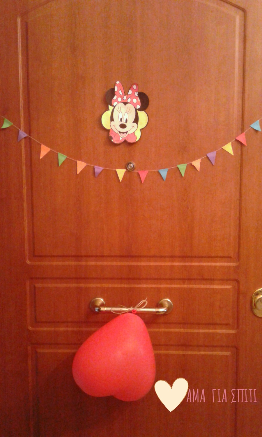 Παρόλες τις αναποδιές όμως, εμείς στολίσαμε πόρτες , παράθυρα, κάδρα και φωτιστικά με σημαιάκια και με τη Minnie φυσικά.