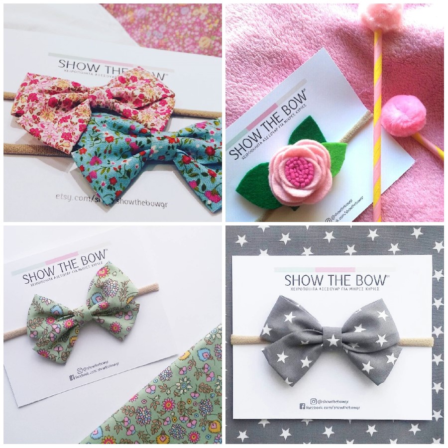 Οι κοπέλες του Show the Bow, δυο αδερφές με πολύ ταλέντο, ετοιμάζουν για τις μικρές (και τις λίγο μεγαλύτερες) κυρίες χειροποίητα αξεσουάρ, με πολλή αγάπη και μεράκι, όπως φαίνεται στο έξοχο αποτέλεσμα τους.